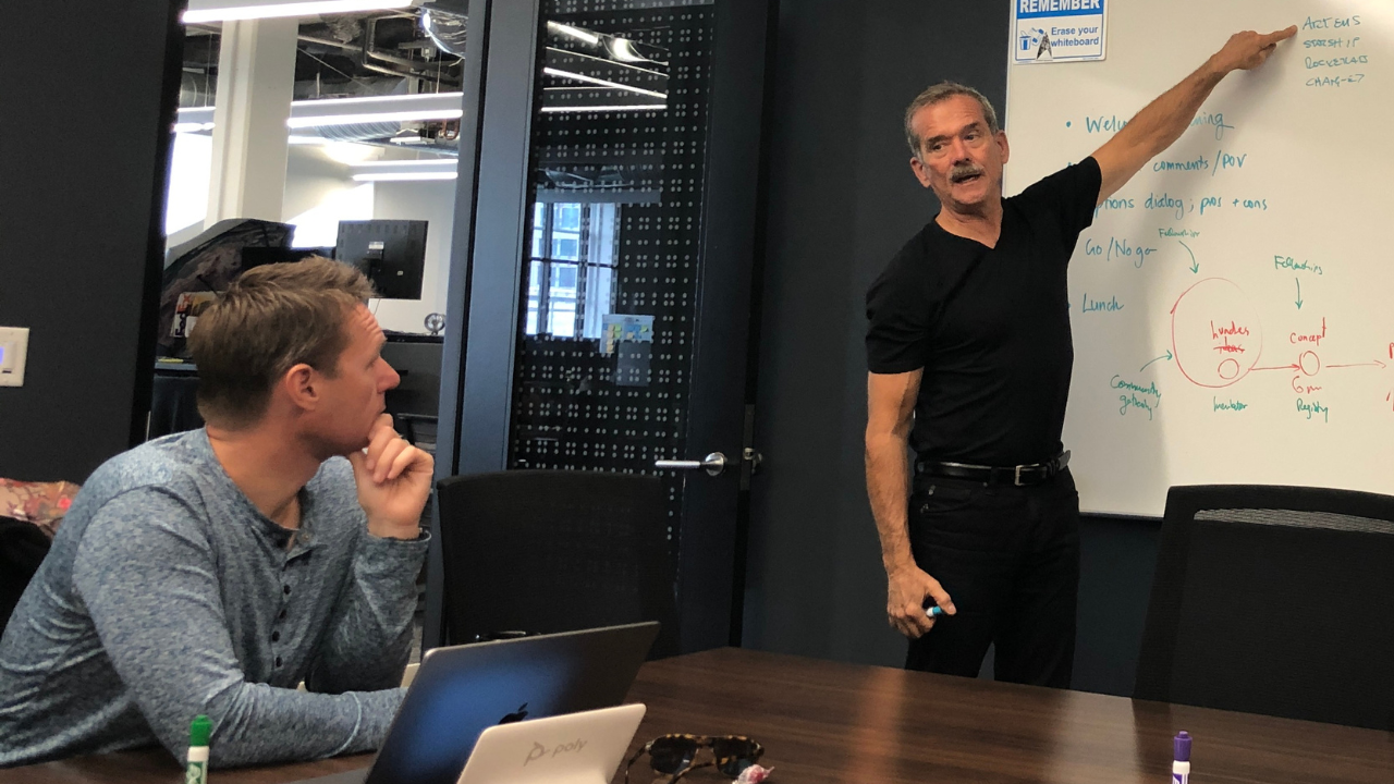 Chris Hadfield, Open Lunar Board Chair, and Robbie Schingler, Open Lunar founding member and donor; co-founder of Planet Labs discussing Open Lunar’s Innovation Process.